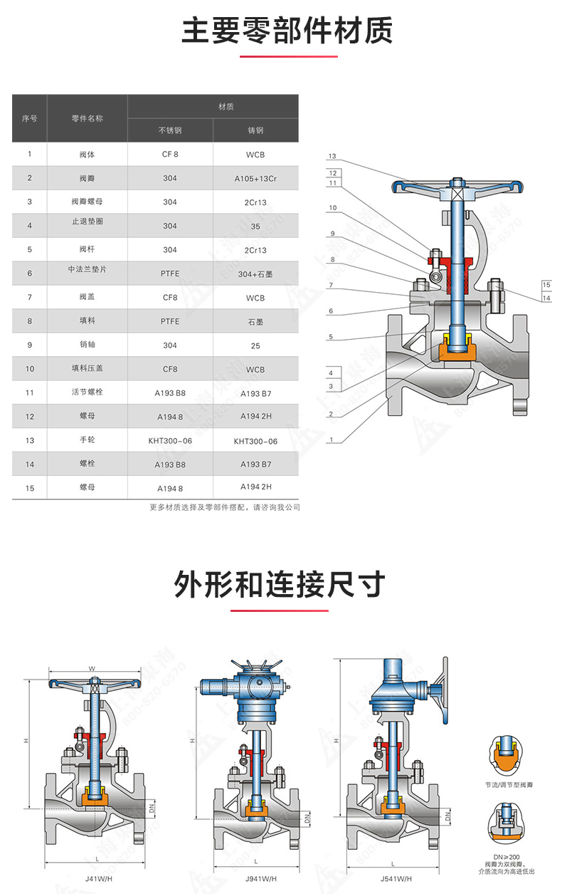 J41型国标不锈钢法兰截止阀, 为星空·综合(xingkong)体育官方网站自主研发生产。本星空·综合(xingkong)体育官方网站设计制造标准符合GB/T12235-89标准其启闭件是圆柱形的阀瓣,密封面呈平面或锥面,阀瓣沿流体的中心线作直线运动。国标截止阀只适用于全开和全关,一般不用来调节流量,定做时允许作调节和节流。